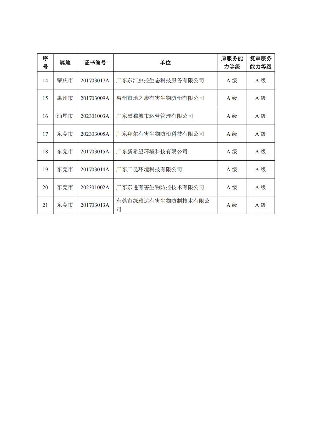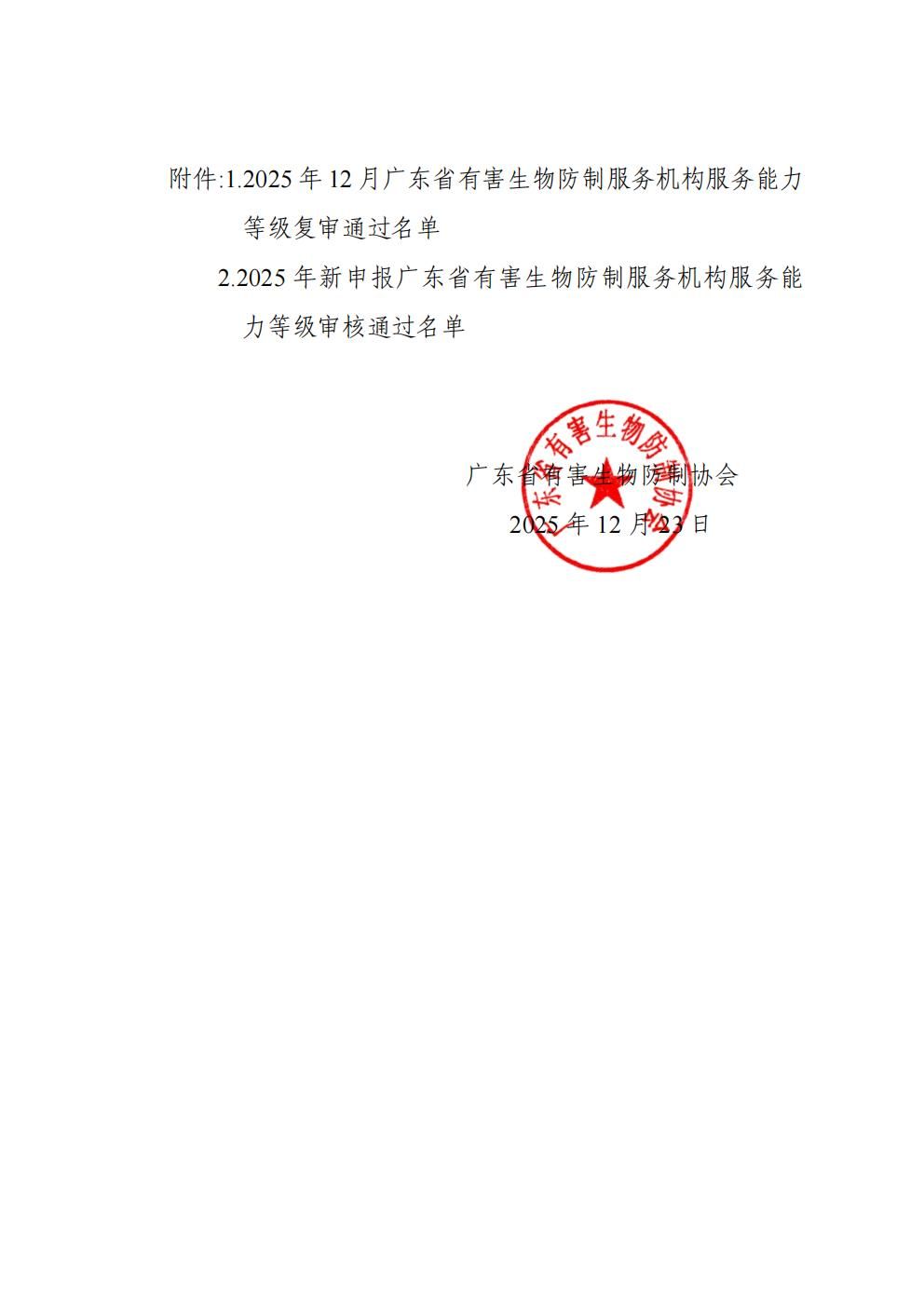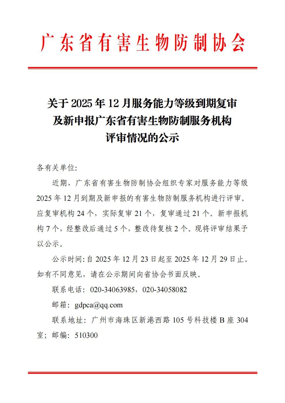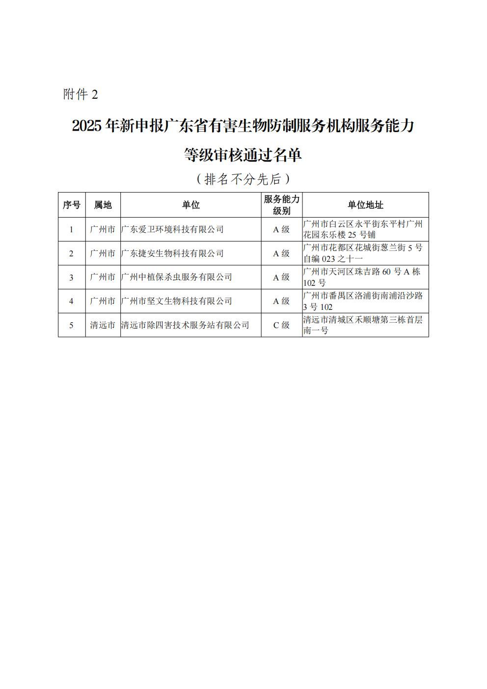 【公示】关于2025年12月服务能力等级到期复审及新申报广东省有害生物防制服务机构评审情况的公示
